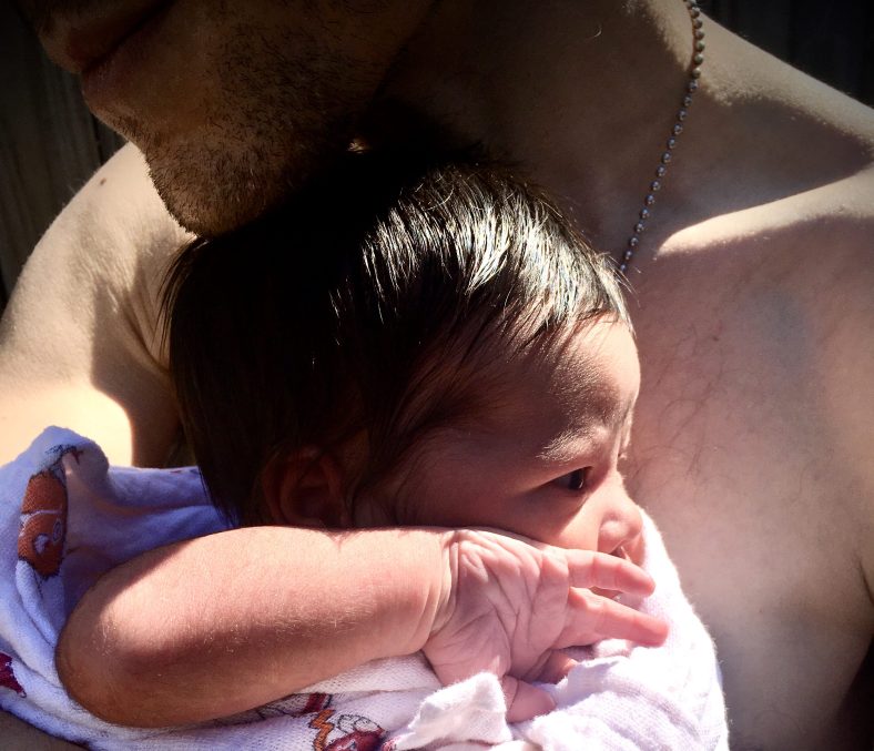 This is a picture of my newborn with his father. My latest prose poem Baby Picture in the new issue of Platypus Press’ Wildness, is based on — you guessed it — a baby picture. I wrote this last year before I was pregnant. It is about the distance between my father and me, which is a spot on my heart too sore for me to say more about here. It is surreal to have this piece published so soon after giving birth to my first child — a child who has my face; a face I inherited from my father. My child’s relationship with his father will be very different from the one I have with mine. The long tides between families, circles broken and unbroken through time, are always on my mind but hard to write about. This piece is the closest I’ve come yet. I hope you like it.