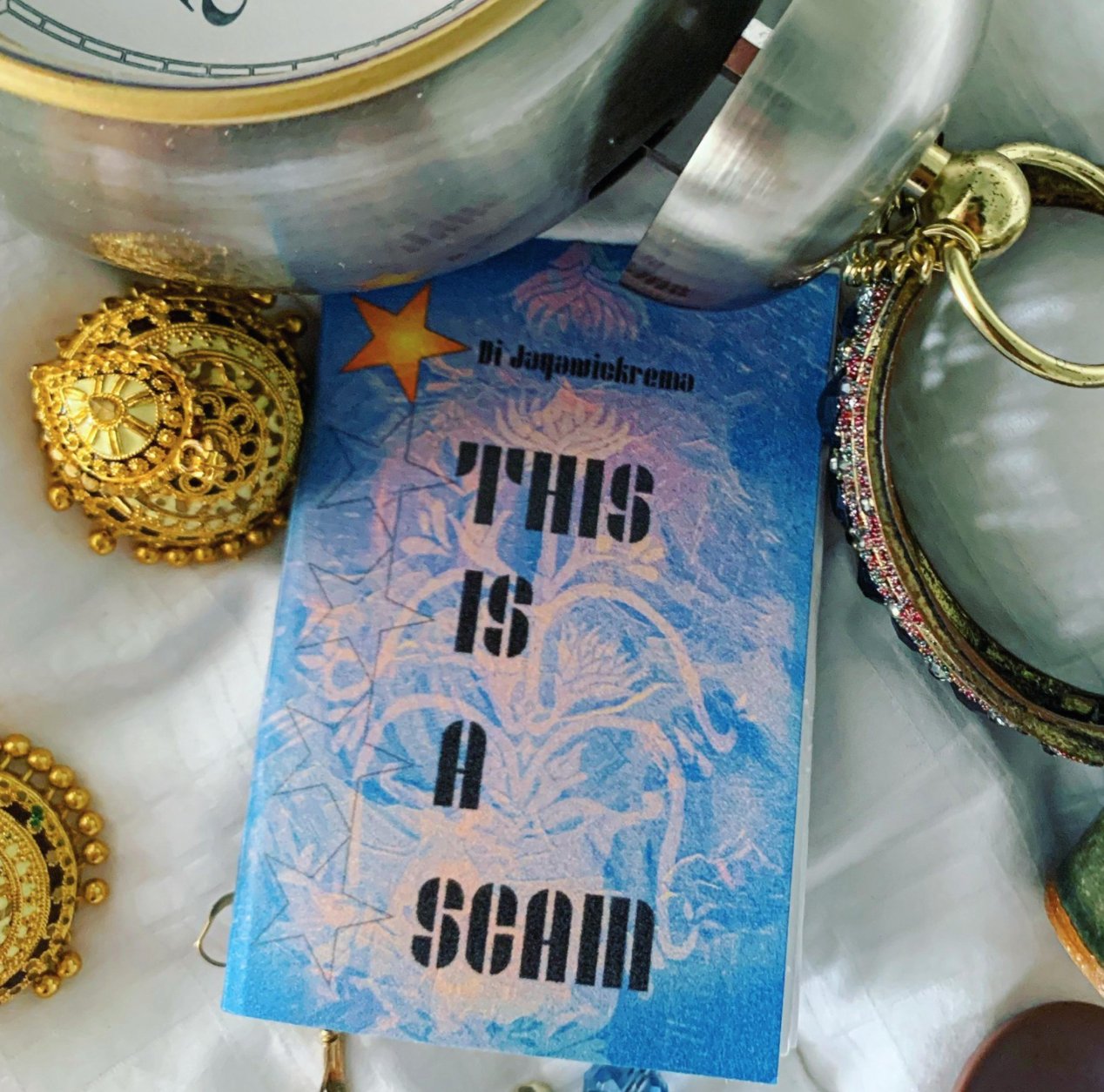 “This is a Scam” is not subtle! Another hermit crab fiction, this piece is a satirical take on U.S. assimilation written as a 1-star airline review. Big shoutout to the twin scams of the American Dream and Spirit Airlines for inspiring this piece! This flash is the beginning of a time where I’m having more fun with writing–which hopefully leads me to writing more! My writing over the past few years has been knotty, realist, and hard to write. I’m happy to be shifting toward holding hard truths in more buoyant ways, including speculative fiction! I was honored to be asked to submit this piece to their CROSSINGS series by the editor of One Minute Press, a beautiful, communal new press hand-making zines featuring flash. Flash moves and disappears so fast in the literary landscape in a way I both value and feel sad about. It’s a pleasure to have writing “stay” in the form of something tangible made with care and beauty. It’s also an incredible gift to have the art created by a fellow Sri Lankan artist, Amanda Goonetilleke. You can buy this zine and the entire CROSSINGS series as a bundle here.